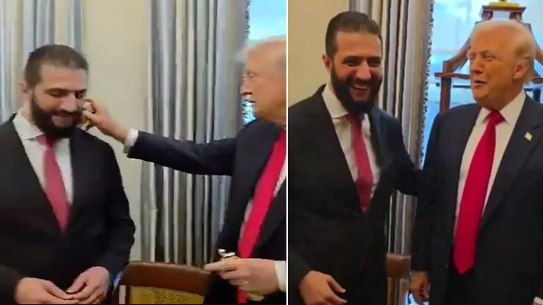 সফরে ট্রাম্প–শারা বৈঠকের একটি ভিডিও এখন সামাজিক যোগাযোগমাধ্যমে ছড়িয়ে পড়েছে। সেখানে দেখা যায়, ট্রাম্প মজা করে আল-শারাকে এক বোতল পারফিউম উপহার দিচ্ছেন। নিজেই সেটি তাঁর গায়ে ছিটিয়ে বলছেন, ‘এটাই সেরা ঘ্রাণ…আরেকটা আপনার স্ত্রীর জন্য।’ এরপর হঠাৎ হাসতে হাসতে জিজ্ঞাসা করেন, ‘কয়জন স্ত্রী?’